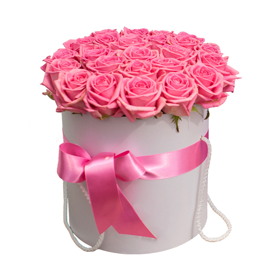 Роза одноголовая розовая. Упаковка (шляпная коробка, квадратный бокс, коробка сердце, оазис)