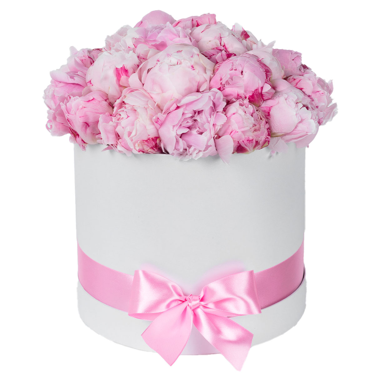 Пион розовый. Упаковка (шляпная коробка, квадратный бокс, коробка сердце, оазис)